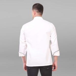 Customized Plain White Chef Coat with Black Piping & Buttons | Premium Restaurant & Hotel Uniform (Without Logo Print)